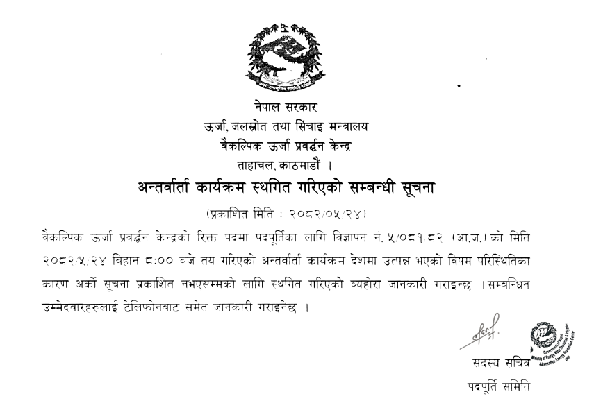 अन्तर्वार्ता कार्यक्रम स्थगित गरिएको सम्बन्धी सूचना