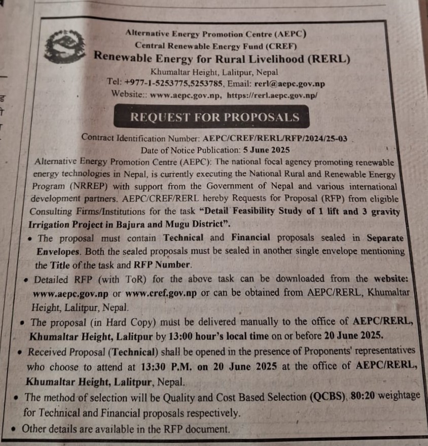RFP-Detail Feasibility Study of 1 lift and 3 gravity Irrigation Project in Bajura and Mugu District
