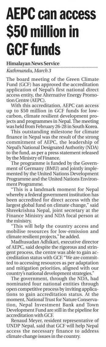 AEPC and GCF agreement opens new Oppotunitiesto leverage climate financing in Nepal